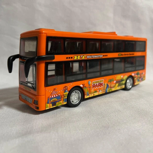 Іграшковий автобус двоповерховий пластиковий відкриваються двері світло інерція жовтогарячий