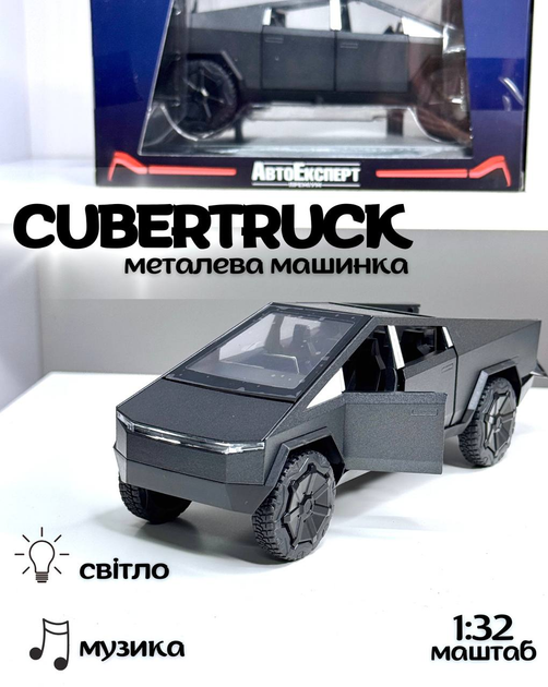 Інерційна колекційна машинка Tesla Cybertruck 1:32 з ефектами світла та звуку, Чорна