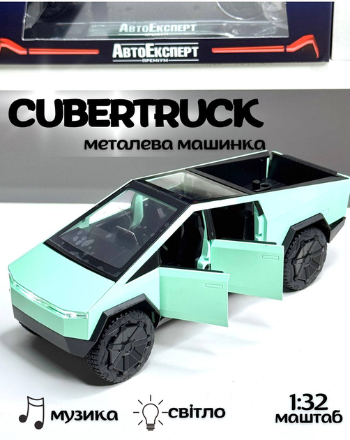 Інерційна колекційна машинка Tesla Cybertruck 1:32 з ефектами світла та звуку, Бірюзова