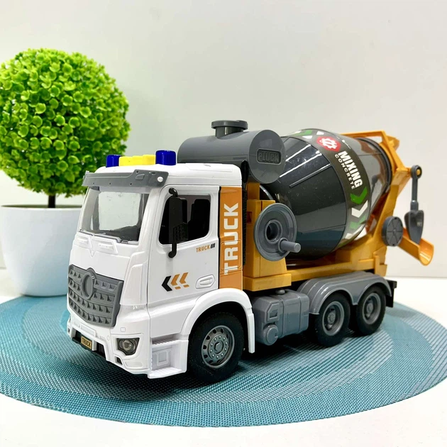 Спецтехніка Бетонозмішувач світло звук рухомі деталі масштаб 1:16 Жовто-сірий (ZH 812-1)
