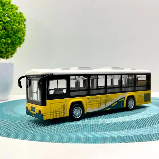 Автобус металевий з інерцією підсвічуванням та звуком відчиняються двері Жовтий (CLM-0771AC)