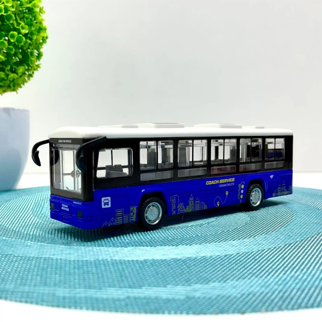 Автобус металевий з інерцією підсвічуванням та звуком відчиняються двері Синій (CLM-0771AC)