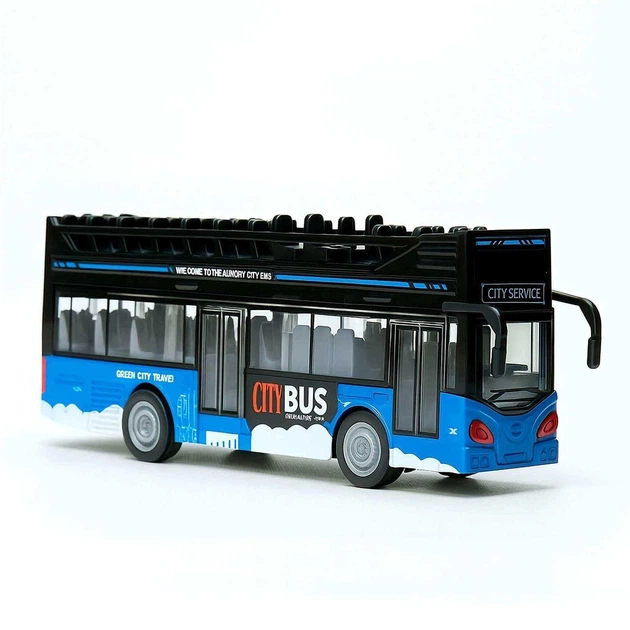 Іграшковий автобус двоповерховий Sity Bus 28 см — інерційний, зі світлом і звуком, синій, арт. JS122-122B