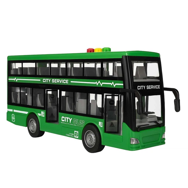 Іграшковий автобус City Bus RJ5504-green зелений — двоповерховий інерційний автобус зі світлом і звуком, 28 см
