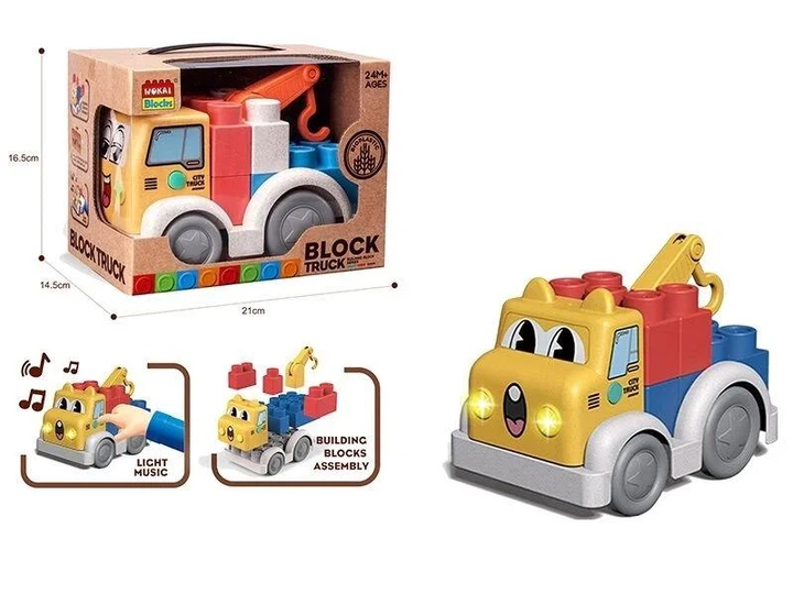 Машина 9910 A (48/2) "Автокран", підсвічування, звуки транспорту, пісенька англійською, конструктор, в коробці