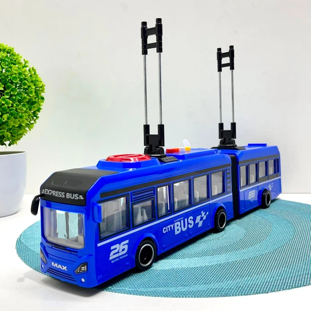 Тролейбус з інерцією підсвічуванням і звуком відчиняються двері Синій (JS163BC)