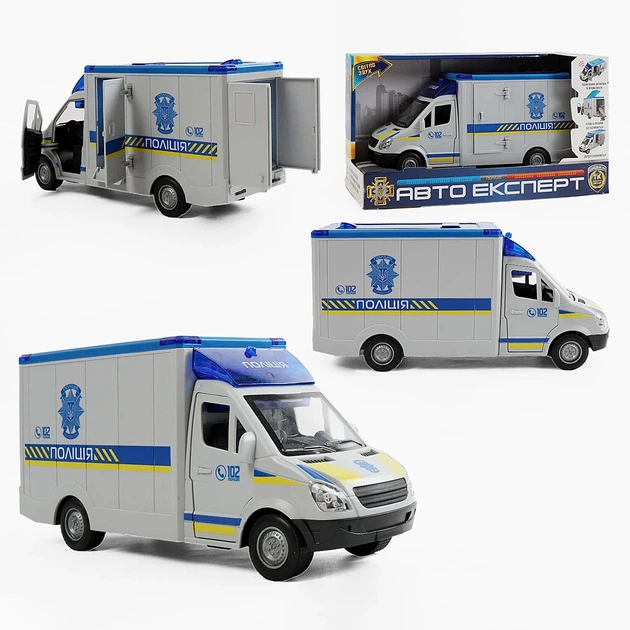 Машинка Авто Експерт Поліція інерція звук підсвічування вірші пісні звук сирени двері та дах відкриваються Біло-синя (ТК-734