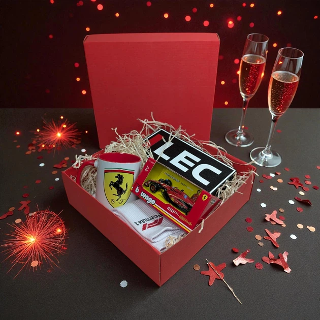 Подарунковий Бокс Ferrari 4 в 1 Light Box Нічник (20х9х4см) / Колекційна Модель Феррарі SF-24 №16 Charles Leclerc в Масштабі