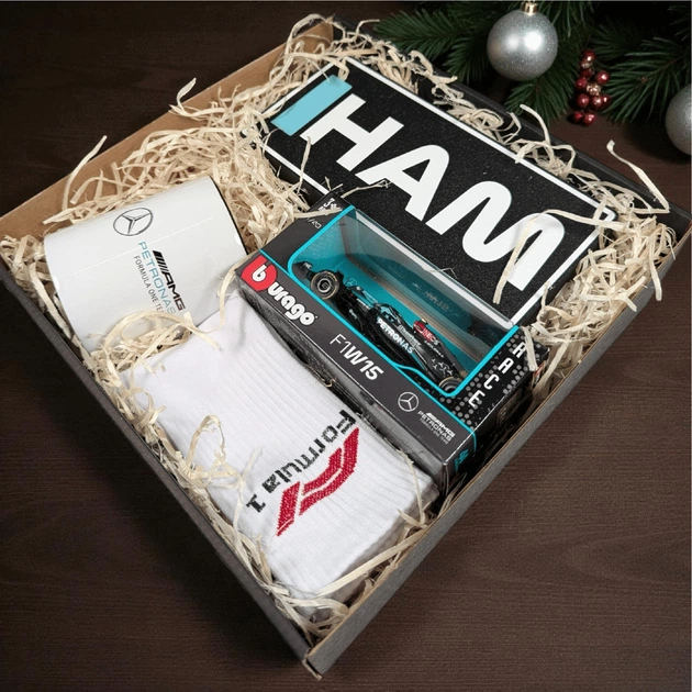 Подарунковий Бокс Mercedes 4 в 1 Light Box Нічник (20х9х4см) / Колекційна Модель Мерседес W15 2024 №44 Lewis Hamilton в Масш