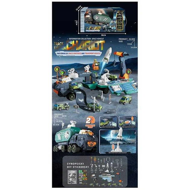 Космічна станція JP 588-15 2в1, світло, звук, інерція, 6 металопластикових машин, катапульта, механічний запуск ракети та пі