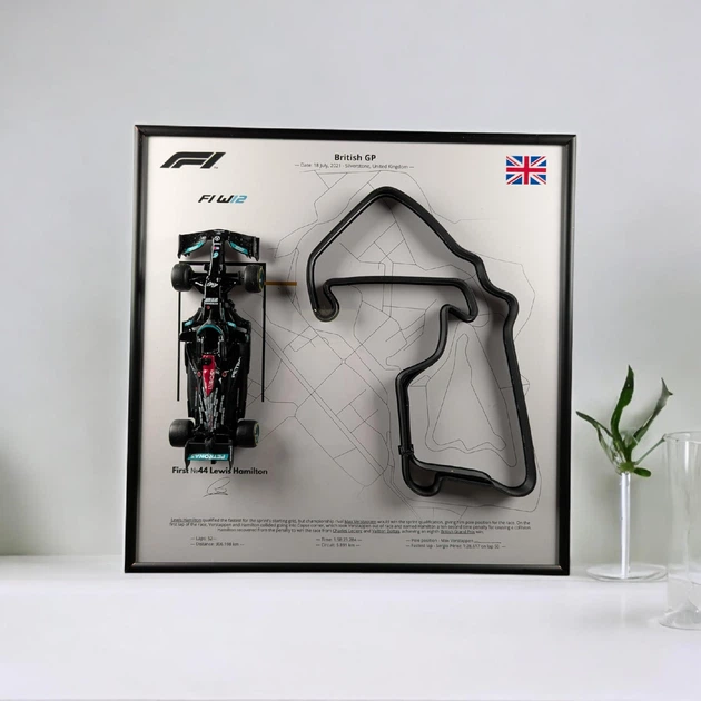 Модель Bburago з Рамкою Тримачем 2в1 на Стіну або Полку з F1 W12 Mercedes та 3D Трасою British Grand Prix "Silverstone" / Се