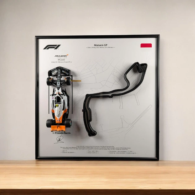 Модель Bburago з Рамкою 2в1 на Стіну або Полку з McLaren MCL60 та 3D Трасою Monaco Grand Prix (Livery For Monaco GP) "Monte