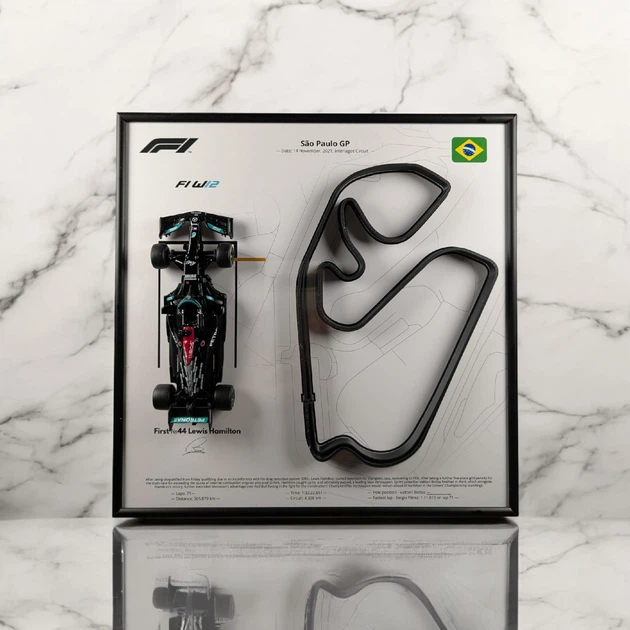 Модель Bburago з Рамкою Тримачем 2в1 на Стіну або Полку з F1 W12 Mercedes та 3D Трасою So Paulo Grand Prix "Interlagos Circu
