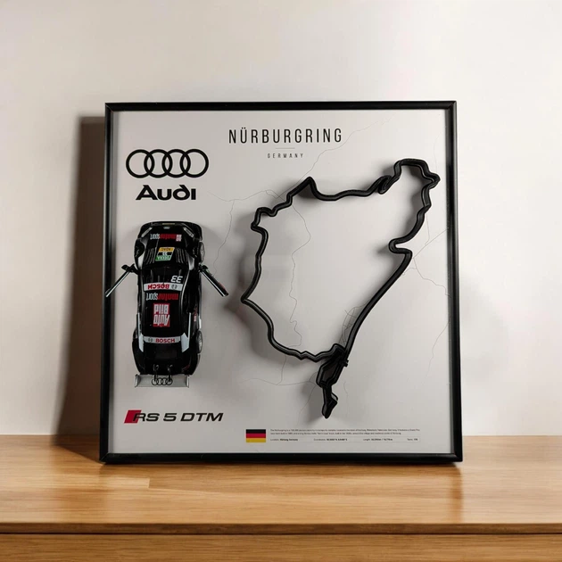 Модель CCA з Рамкою Тримачем 25x25 2в1 на Стіну або Полку з Audi RS 5 DTM В Масштабі 1:44 та 3D Трасою Nrburgring / Нюрбургр