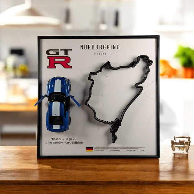 Модель CCA з Рамкою Тримачем 25x25 2в1 на Стіну або Полку з Nissan GT3 (R35) В Масштабі 1:44 та 3D Трасою Nrburgring / Нюрбу