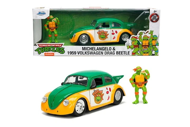Машинка металева Jada "Черепашки-Ніндзя" Фольксваген Бітл з фігуркою Мікеланджело