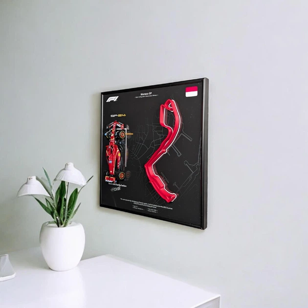 Моделью Bburago з Рамкою Тримачем 2в1 на Стіну або Полку з F1 Ferrari SF24 та 3D Трасою Monaco Grand Prix "Monte Carlo Circu