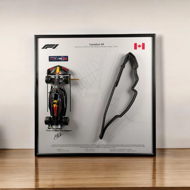 Модель Bburago з Рамкою Тримачем 2в1 на Стіну або Полку з Red Bull RACING RB20 та 3D Трасою Canadian Grand Prix / "Circuit G