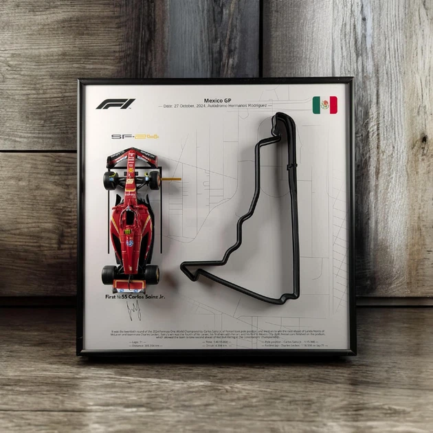 Лімітована Модель Bburago з Рамкою Тримачем 2в1 на Стіну або Полку з F1 Ferrari SF24 та 3D Трасою Mexico GP "Autdromo Herman