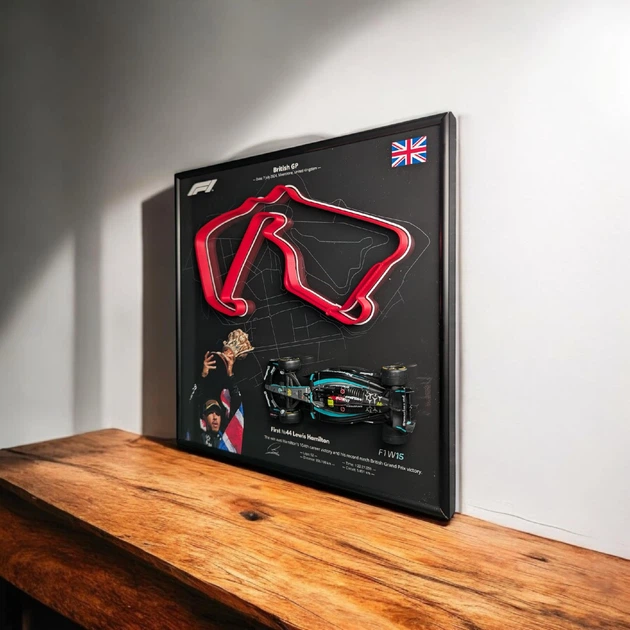 Модель Bburago з Рамкою Тримачем 2в1 на Стіну або Полку з болідом F1 W15 Mercedes та 3D Трасою British GP "Silverstone" / Се