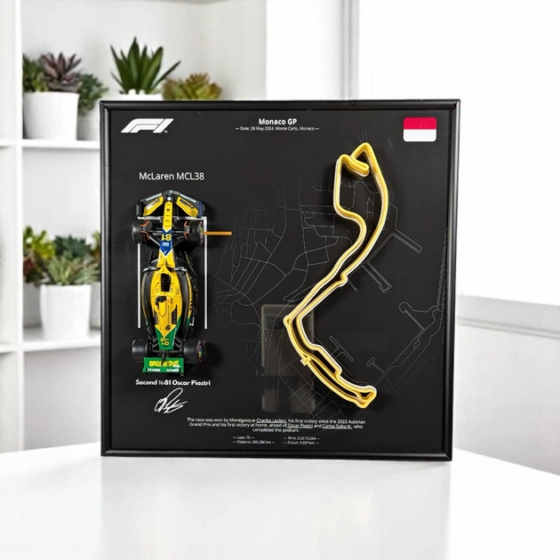Модель Bburago з Рамкою Тримачем 2в1 на Стіну або Полку з McLaren MCL38 та 3D Трасою Monaco Grand Prix "Monte Carlo Circuit"
