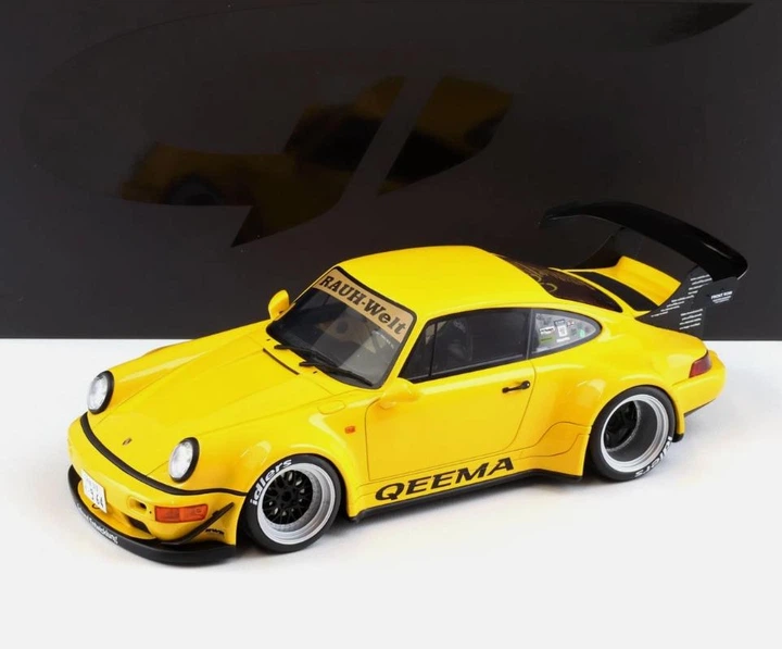 Модель автомобіля Porsche 911 (964) RWB QEEMA RAUH-WELT Yellow 2024 by GT Spirit, Scale 1:18