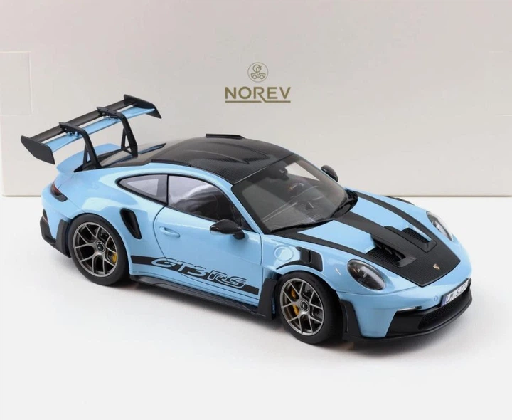 Модель автомобіля Porsche 911 (992) GT3 RS Weissach Package Gulf Blue by Norev, Scale 1:18