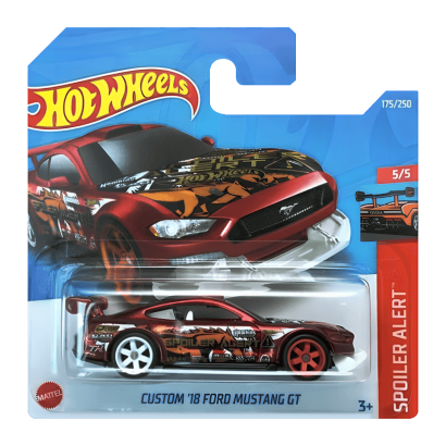 Машинка Базова Hot Wheels Custom '18 Ford Mustang GT Super Treasure Hunt STH Spoiler Alert 1:64 HCY18 Red
