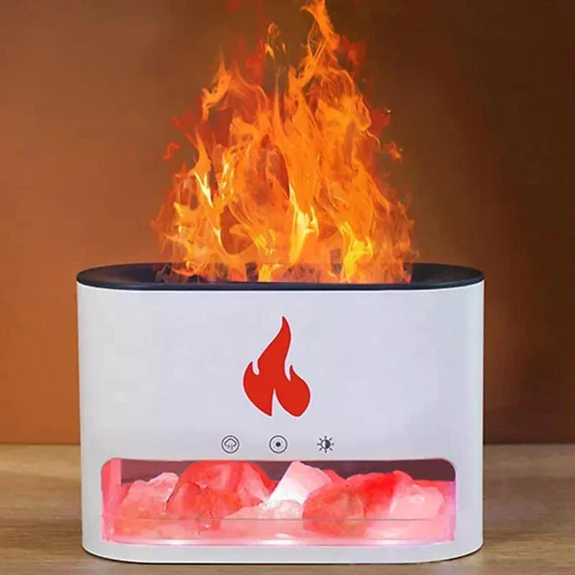 Соляна лампа з ультразвуковим зволожувачем повітря та імітацією полум'я резервуаром для ефірної олії Білий (1001OP145)