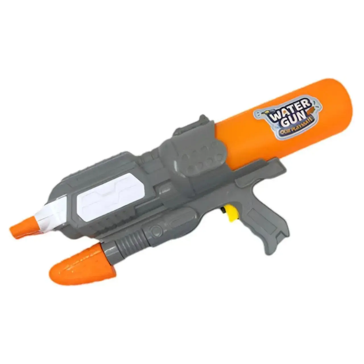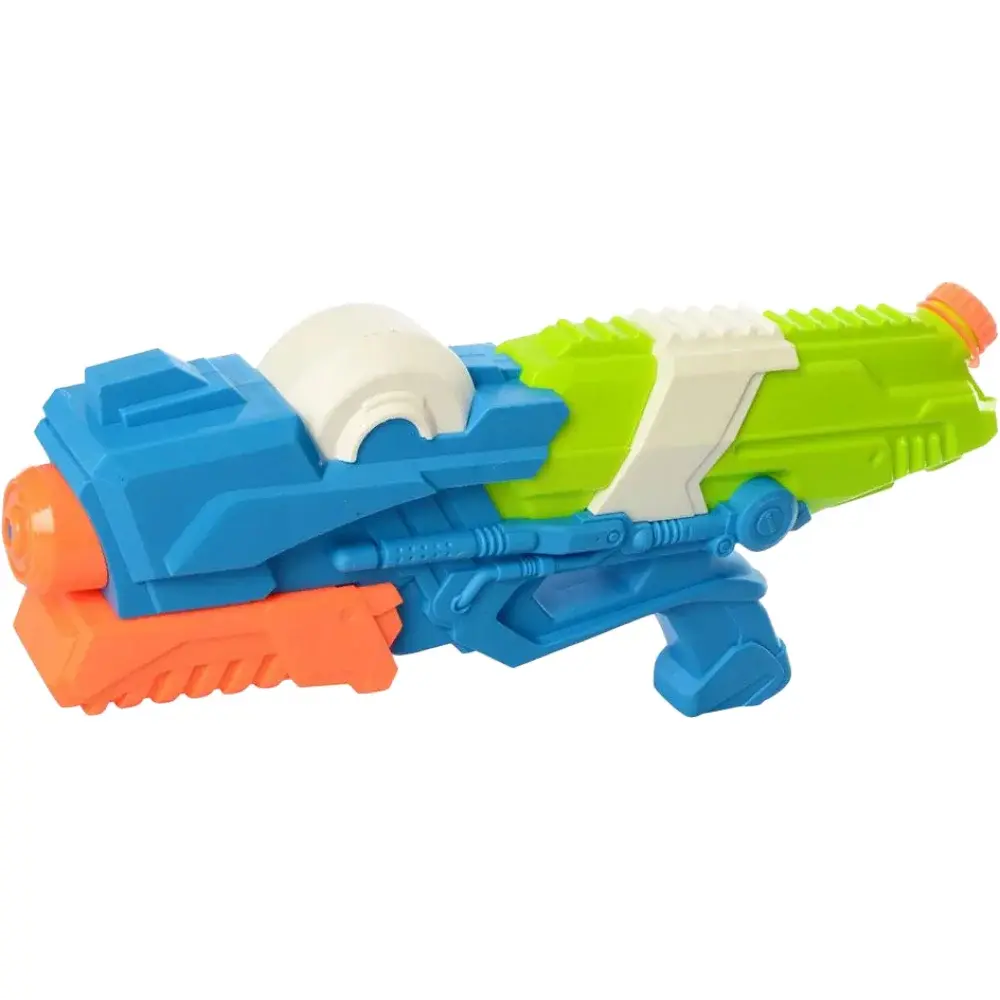 Різнобарвний водний пістолет, сподобається, як хлопчикові, так і дівчинці. Для того щоб почалася стрілянина, необхідно відкрутити ємність в задній частині пістолета набрати туди води і прикрутити назад. Щоб пістолет вистрілив, потрібно відсунути і засунути затвор пістолета. Грати з водним пістолетом, можна як в приміщенні, так і на вулиці. Його можна брати з собою на прогулянки, в