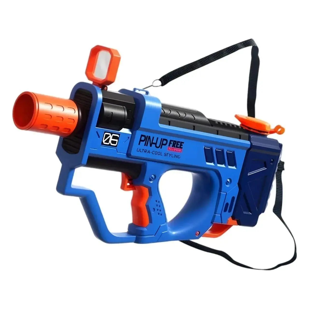 Невеликий іграшковий пістолет оригінальної конструкції і яскравого дизайну. З ним впорається навіть трирічний малюк. Пістолетом дуже легко управляти, він зручно розташовується в руці. Під час стрільбі видає різні звуки. З такою зброєю кожен хлопчисько відчує себе справжнім бандитом або ж навпаки супер героєм з відомого бойовика. Автомат виготовлений з безпечних і міцних матеріалів. Підійде для різних ігор вдома і на вулиці. Завдяки такій іграшці дитина навчиться стріляти по мішені, розвине уяву і навик командної гри. Зброя - це класична хлоп'яча іграшка, без якої не обходиться жодне дитинство.
