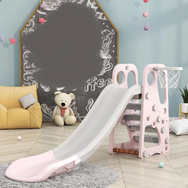 Дитяча гірка 2в1 Terrio Classic Рожева 170 см, баскетбольне кільце, баскетбол для дітей, гірка дитяча