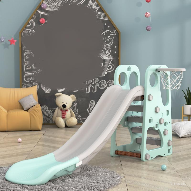 Дитяча гірка 2в1 Terrio Classic М'ятна 170 см, баскетбольне кільце, баскетбол для дітей, гірка дитяча