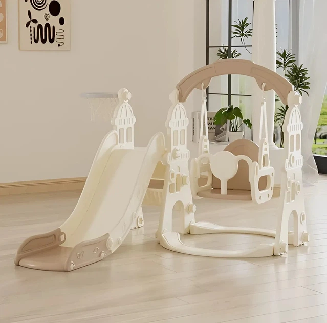 Дитячий ігровий комплекс 3в1 Terrio Castle Бежевий, гойдалка для малюків, дитяча гойдалка, дитяча гірка, гірка для малюків,