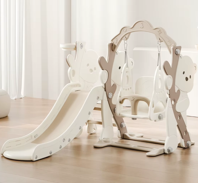 Дитячий ігровий комплекс 3в1 Terrio Panda, гойдалка для малюків, дитяча гойдалка, дитяча гірка, гірка для малюків, баскетбол
