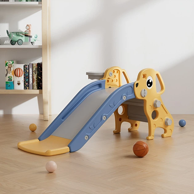 Дитячий ігровий комплекс 2в1 Terrio Puppy Жовтий дитяча гірка, гірка для малюків, баскетбольне кільце, дитячий баскетбол