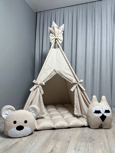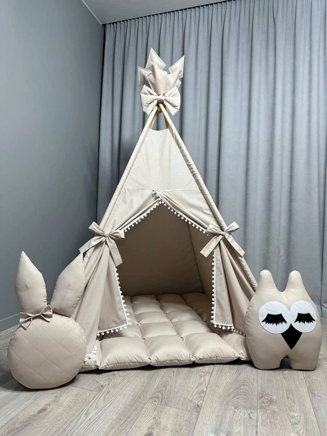 Вігвам для дівчинки Ніжний беж 7 з матрасиком БОНБОН Повний комплект 0098