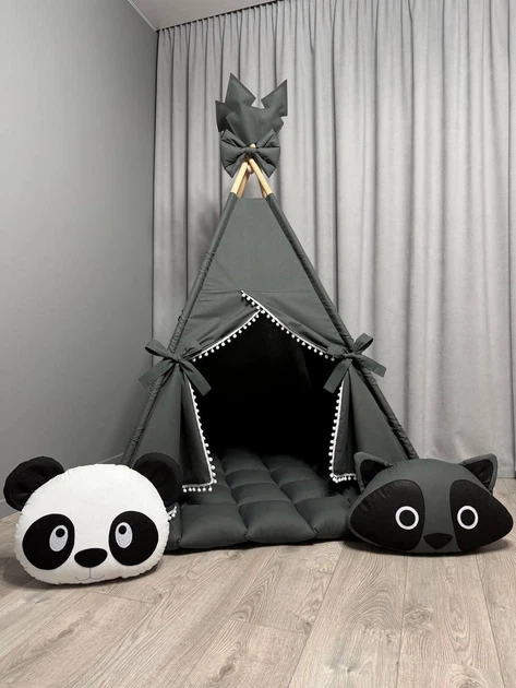 Вігвам Графіт з матрасиком БОНБОН подушками панда та єнотик Повний комплект 0925