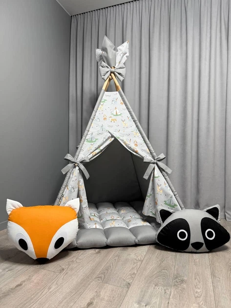 Вігвам Звірята на сірому 10 з матрасиком БОНБОН Повний комплект 0829