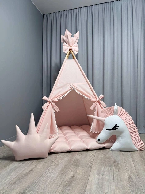 Вігвам для дівчинки Замок принцеси з матрациком БОНБОН подушки єдиноріжок та хмаринка Повний комплект 0889