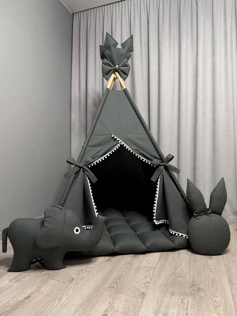Вігвам Графіт з матрасиком БОНБОН подушками зайчик та слоненя Повний комплект 0921
