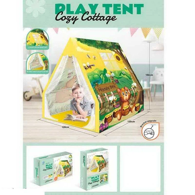 Палатка 5888-21 "Ведмежа", 2 віконця, фіранки, пластиковий каркас, розміри 120х120х150 см, в коробці