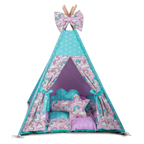 Вігвам Хатка комплект Єдинороги з м'яким килимком - Великий