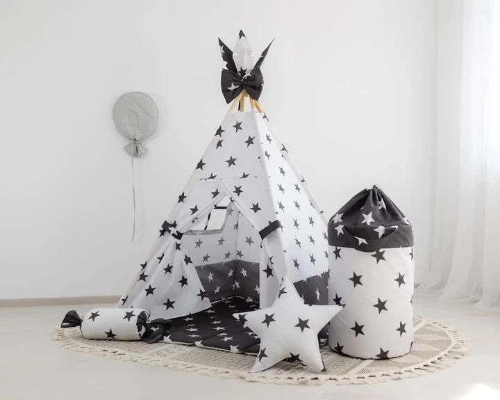 Вігвам в дитячу Зіркове сяйво БОН БОН + Кошик для іграшок + подушки, Намет для дівчинки чи хлопчика