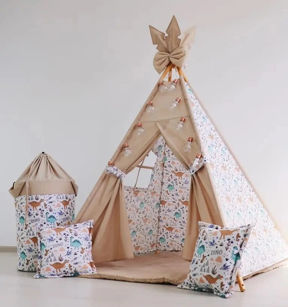 Дитячий вігвам Динозаврики з ковриком + кошик для іграшок. Повний комплект XR Master