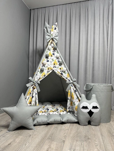 Вігвам Графіт з матрациком БОНБОН подушками зірочка та ведмежа і кошиком для іграшок Повний комплект 0908