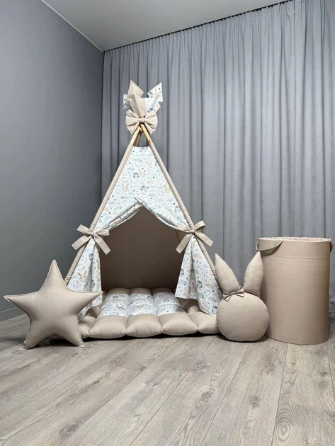 Дитячий вігвам Ведмежа у снах 2 з матрасиком БОНБОН та кошиком для іграшок Повний комплект 0498