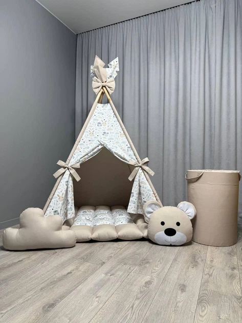 Вігвам Ведмежа у снах 6 з матрасиком БОНБОН та кошиком для іграшок Повний комплект 0506