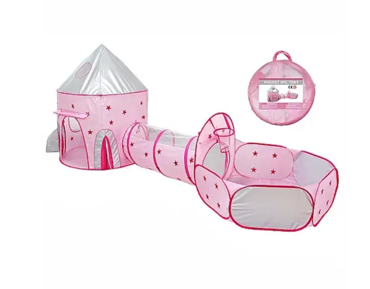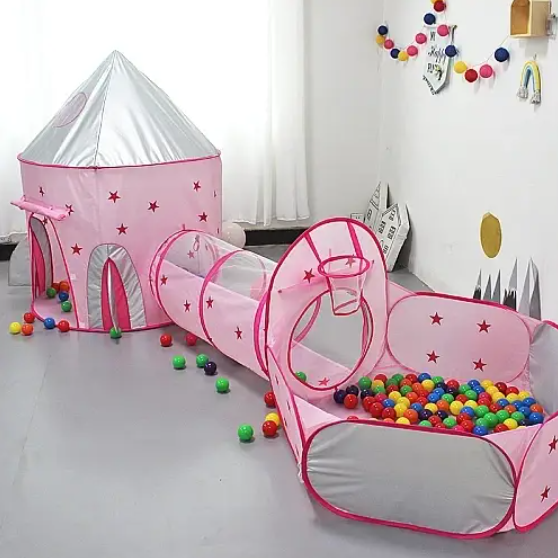 Ігровий намет 3в1 з будиночком, тунелем та басейном для дівчаток (Рожевий)