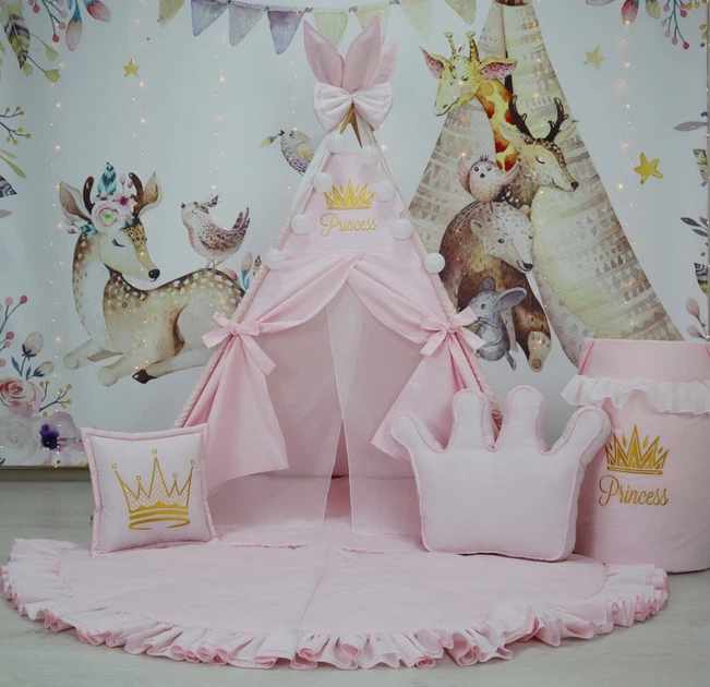 Вігвам намет для дівчинки Принцеса БОН БОН Іменний + кошик + подушки Намет будиночок іменний для дівчинки